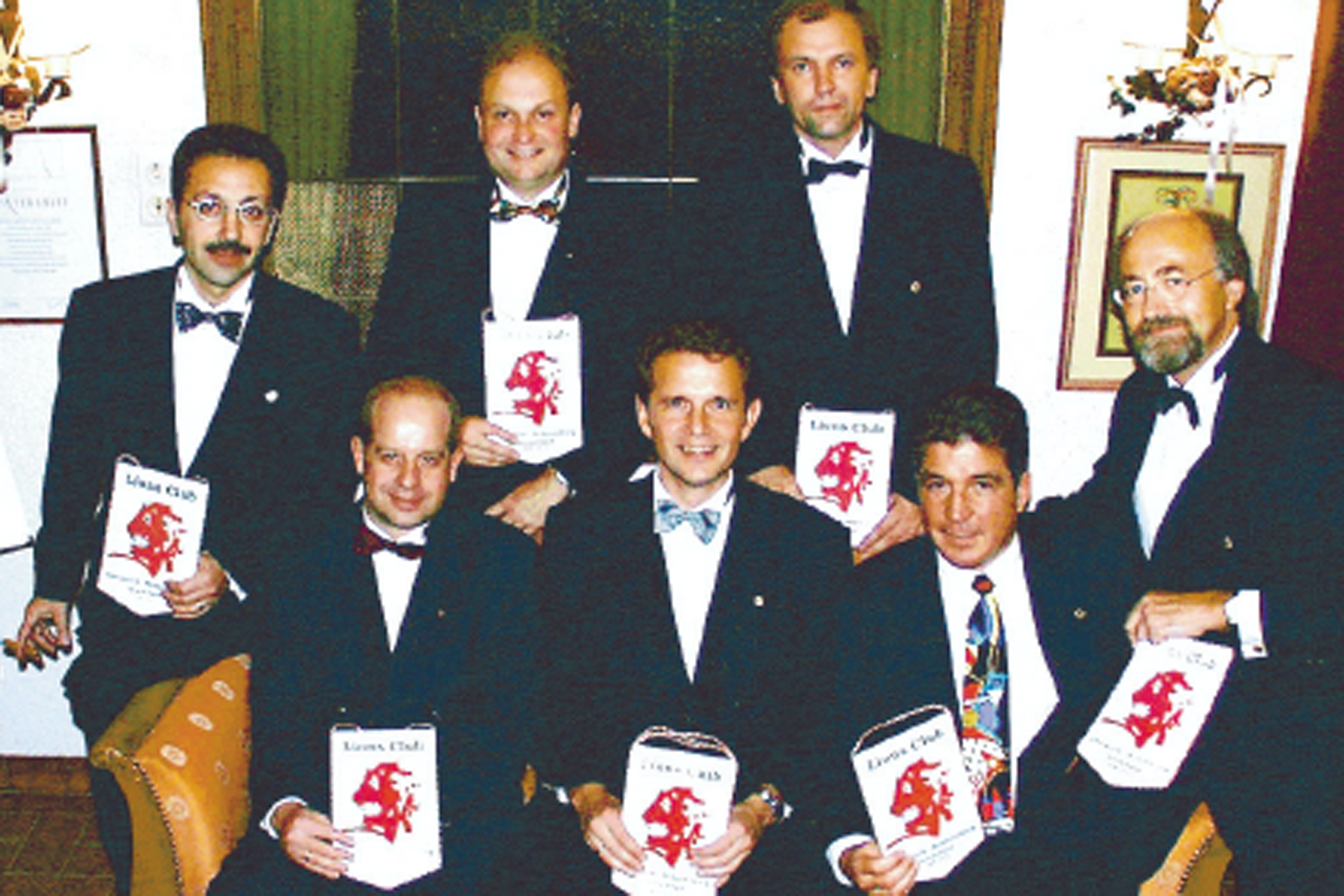 »Die Löwen sind flügge geworden« betitelte die Acher-Rench-Zeitung im November 1999 das Photo des Gründungsvorstands der Oberkircher Lions mit (von links nach rechts): Mansour Khounani, Ulrich von Schauenburg, Hans-Georg Wasmuth, Gründungspräsident Johannes Huber, Tadeusz Turek, Klaus A. Sturn und Rainer Stier.