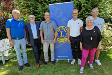 Wechsel bei den Oberkircher Lions: Bei einem lockeren Zusammensein bei Erfrischungsgetränken und kleinen Snacks fand im üblichen Jahresrhythmus die Amtsübergabe statt. Die Aufnahme zeigt von links: Activity-Master Tadeusz Turek; Rainer Stier, Mitgliedsbeauftragter; der neue Präsident Hardy Müns; Nicolas Erdrich, erster Vizepräsident; Liane Karden-Krauss, Clubsekretärin und Past-Präsident Hannes Schmidt. Nicht dabei sein konnte Schatzmeisterin Andrea Ruch-Erdle.